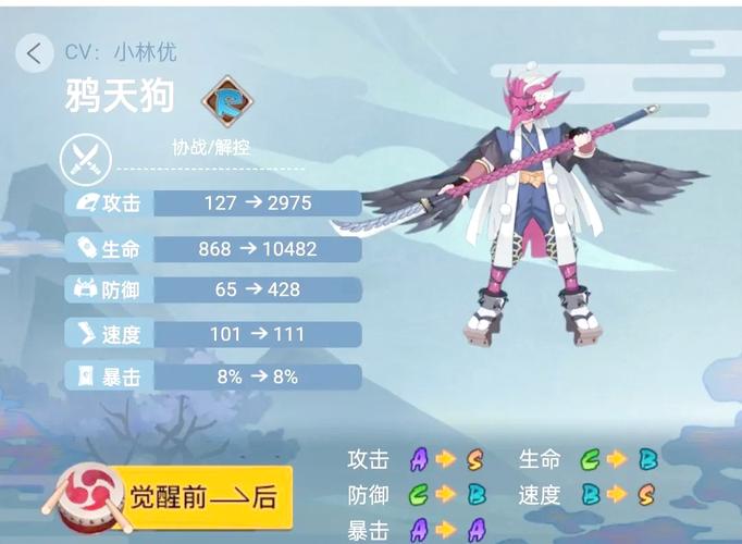 〖伍〗、阴阳师鸦天狗是一只具有AOE输出和连携攻击能力的R级式神,适合搭配蝠翼、轮入道或狰御魂。以下是对鸦天狗的详细分析和御魂搭配攻略:技能效果 刺击:普攻技能,有30%的几率联合一个队友进行攻击。这个技能触发后相当于两个队友同时进行普攻,对普攻有特效的式神有极大加成。