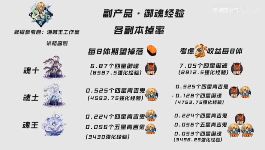 〖肆〗、阴阳师魂土的掉率相较于魂十有所提高,但具体概率仍具有不确定性。以下是关于阴阳师魂土掉率的详细分析:六星御魂掉落率:魂十:经过玩家测试,魂十的六星御魂平均掉落率约为每18把一个。魂土:相较于魂十,魂土的六星御魂掉落率有所提高,玩家测试结果显示平均每8把一个。
