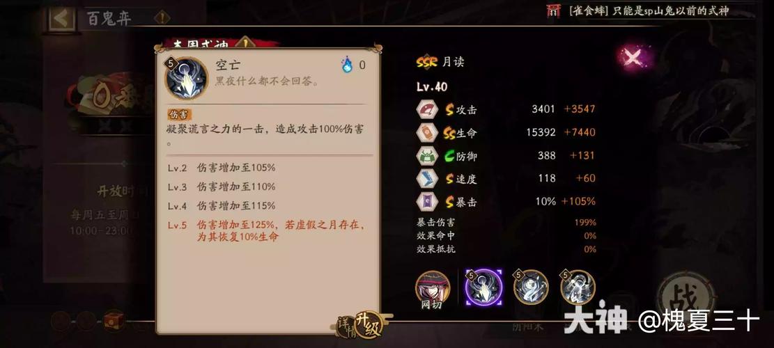 〖肆〗、御魂:游戏中用于强化角色属性和技能的道具。稀有度:御魂的稀有程度,分为普通、稀有、SSR、SSR+ 四个等级,稀有度越高,属性通常越好。星级:御魂的星级反映了其属性加成的多少,星级越高,属性加成越高,但获取难度也越大。属性:御魂所赋予角色的基本属性,如攻击、防御、生命、速度等。