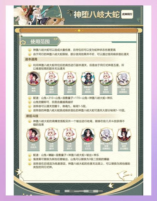 灵活搭配:根据敌方的阵容以及队伍的需求进行灵活搭配。面对高输出敌方时,可选取增加输出和生存能力的御魂;在需要控制局面时,可选取提高控制效果和生存能力的御魂。注意御魂等级和属性:确保所选御魂的等级和属性与八岐大蛇的战斗需求相匹配,以最大化发挥战斗力。