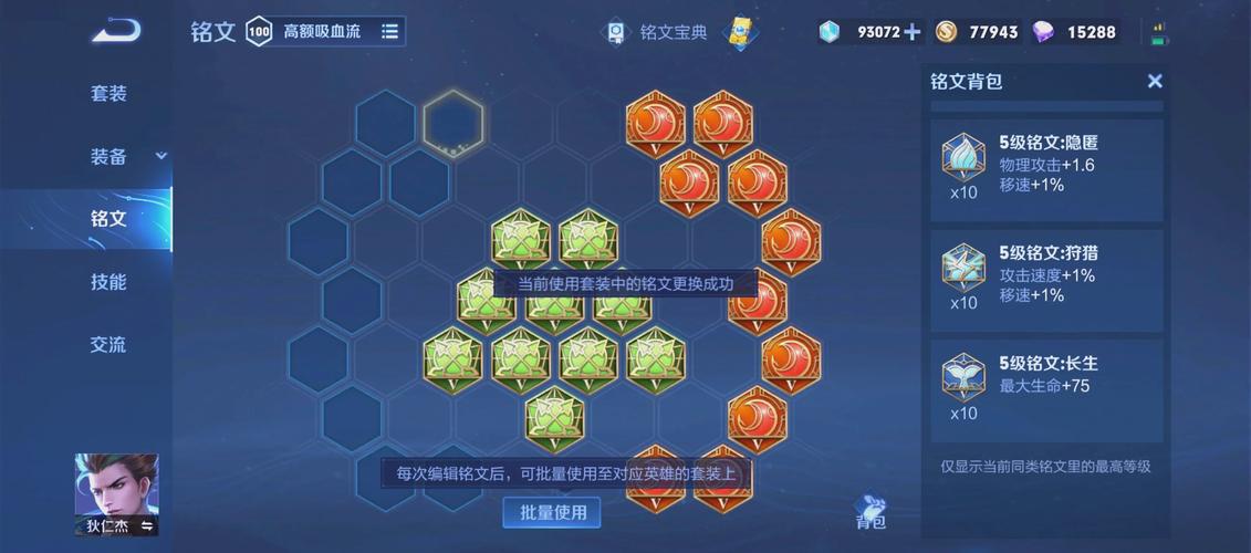 铭文搭配 虞姬铭文推荐搭配如下:红色铭文:红月,提供攻击速度+6%和暴击率+0.5%,有助于虞姬快速积累攻击速度,提高输出伤害。蓝色铭文:调和,增加最大生命+45,物理防御+2,每5秒回血+5,提升虞姬的生存能力。绿色铭文:鹰眼,提供物理攻击+0.9和物理穿透+4,增强虞姬的物理输出能力。