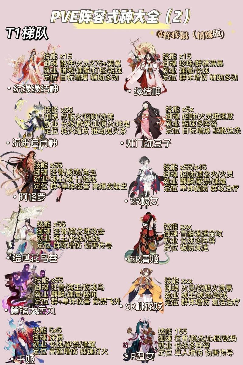 〖贰〗、阴阳师当前版本SSR式神强度推荐介绍 PVE强度排名 T0级别:这些式神在PVE活动中能极大提升玩家的体验,是必练的“人权卡”。它们通常在基础资源获取(如探索、御魂副本)、日常活动(如突破、道馆)以及大型活动副本(如超鬼王、爬塔)中都有出色的表现。