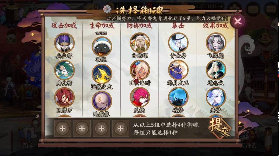 星级:高级御魂的星级是判断其质量和属性的重要指标,星级越高,属性和效果通常越好。属性:御魂的属性多种多样,包括攻击、防御、生命、速度、暴击、暴击伤害、命中、命中抵抗和效果抵抗等。玩家需根据式神的定位和需求选取合适的属性。