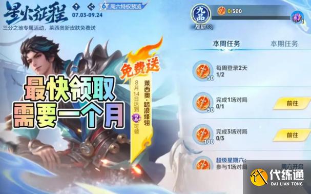 〖陆〗、王者荣耀新英雄莱西奥获取全攻略:通过游戏内活动获取 关注官方活动:新英雄上线时,王者荣耀官方通常会推出相关活动,如“莱西奥挑战”。参与这些活动,完成指定任务(如参与对局、累计胜场或完成特定目标),即可逐步解锁莱西奥。