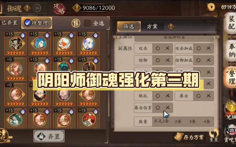 阴阳师手游武士之灵御魂搭配推荐如下:首选御魂:日女 位置选取:2号位:速度,确保武士之灵能够快速出手,释放技能和回血。4号位和6号位:攻击,提高武士之灵的输出能力。副属性:主速度,副属性中可以堆20点左右的命中,以确保2技能减益BUFF的必中。副属性防御也可以适当堆一些,以增加存活率。