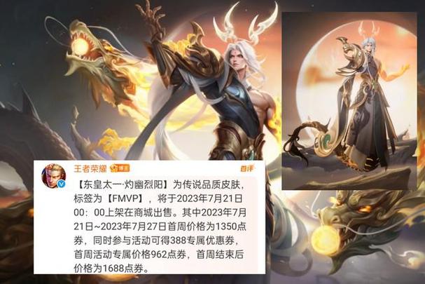 〖叁〗、王者荣耀的东皇太一皮肤【逐梦之光】在3月30日的更新后开启了限时返场活动,让玩家们有机会直接在商城购买。想要入手这款KPL限定皮肤的玩家,现在需要支付的点券费用是888元。不过,幸运的是,玩家可以使用英雄修炼获得的100点券抵扣券,这样实际只需花费788点券即可拥有。