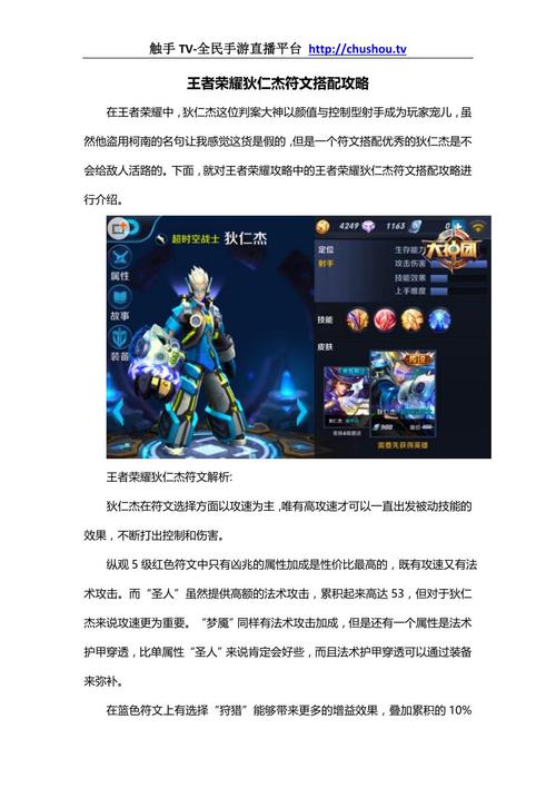 本文摘要: 今天给各位分享王者荣耀狄仁杰操作攻略的知识,其中也会对王者荣耀狄仁杰技巧攻略大全进行解释,如果能碰巧解决你现在面临的问题,别忘了关注本站,现在开始吧!《王者荣耀》真相只有一个——狄仁杰新手入门攻略〖壹〗、六神装:急速战靴+末世+泣血之刃+破甲弓+无尽战刃+贤者的庇护。这套出装提供了足够的攻击速度...