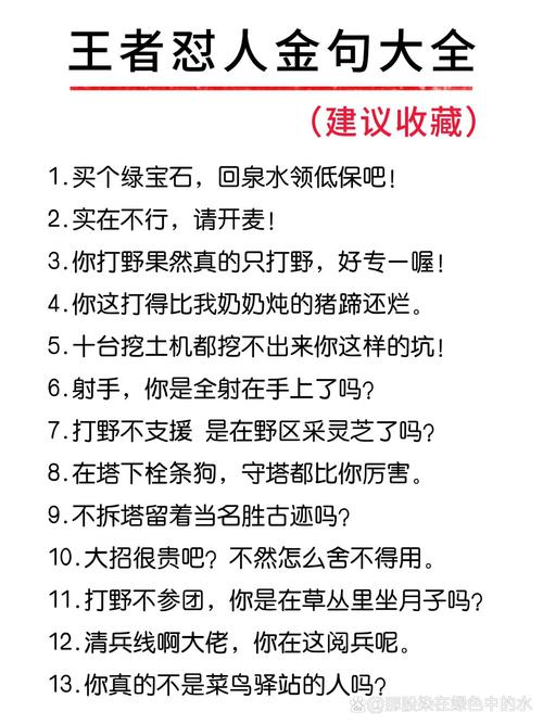 在王者荣耀的世界里,怼人不带脏字,这不仅是对游戏的尊重,也是对对手的礼貌。以下是一些既犀利又不失风度的怼人语录,让你在对局中既展现智慧又不失优雅。