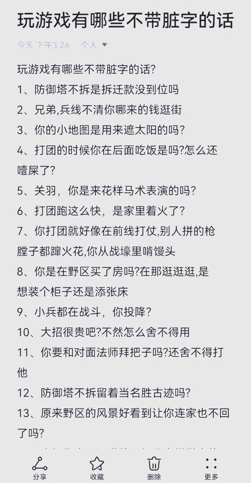 在王者荣耀游戏中,使用怼人脏话并不是一种积极或建设性的交流方式。虽然有时在游戏中可能会遇到令人不悦的情况,但使用粗鲁或侮辱性的语言只会加剧矛盾,破坏游戏氛围。相反,我建议采取更积极、理性的方式来应对游戏中的挑战和冲突。