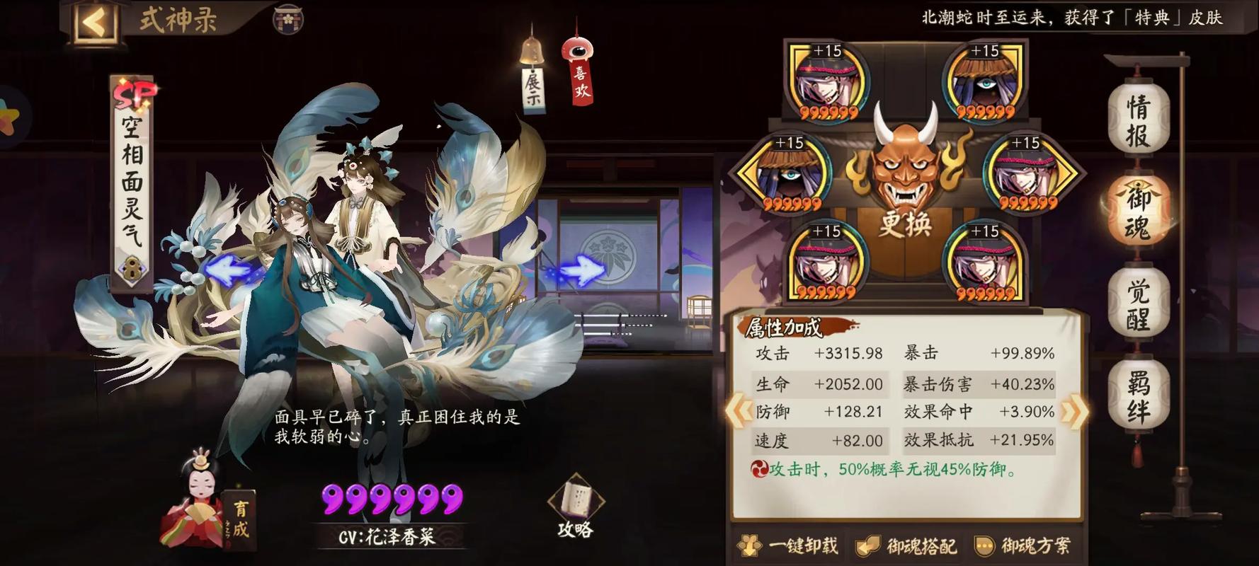 御魂的类型推荐选取招财+火灵,其次可以考虑涂佛和共潜,共潜是专注PVP斗技的选取;SP追月神的定位是供火+辅助,在战斗中甚至可以不施放技能,所以共潜对于她来说是非常实用的;总的来说这个式神的强度还是可以的,在一些玩法中还是可以登场的,喜欢这个角色的玩家可以去培养一下。