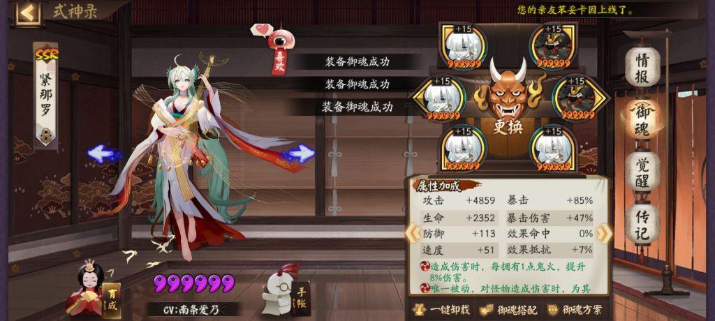 PVE向御魂选取 狂骨+土蜘蛛:主流方案:这是紧那罗在PVE中最常用的御魂搭配。狂骨提供高额增伤,尤其适合紧那罗这种多段输出式神;土蜘蛛的伤害机制与紧那罗的暖机过程完美契合,能够打出极高的“核爆伤害”。属性选取:246号位分别为速度、攻击、暴击伤害,反堆暴击。