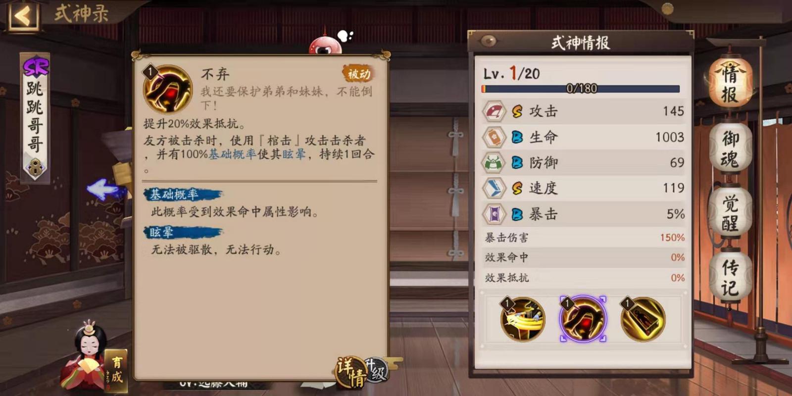 综上所述,对于跳跳哥哥的御魂搭配,推荐优先考虑雉魂或地藏御魂,以提高其生存能力和辅助效果。同时,速度属性对于跳跳哥哥来说至关重要,可以确保其更快地行动并发挥复活和保护的作用。在特定情况下,也可以考虑使用木魅御魂来限制敌方的鬼火使用,但需要根据实际战斗情况进行选取。