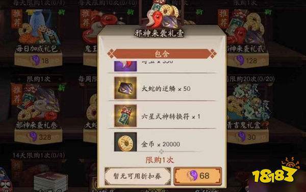 〖肆〗、在探索地图中,神秘商人随机刷新,可能会出售一些珍贵道具,其中包括五星转换符。玩家可以通过魂玉或勾玉购买。神龛商店的轮换中,有可能会出现转换符,但大多数是六星转换符。在阴阳师不定期举办的活动中,玩家可以通过参与活动来兑换一些转换符。