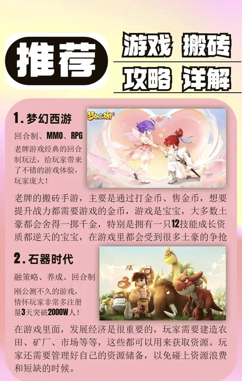 《梦幻西游手游》作为搬砖界的常青树,拥有稳定的赚钱方式。玩家可以通过材料、装备、宝图、抓鬼、跑商押镖等多种途径获取收益。这些搬砖点不仅多样,而且经过长期验证,确保了收益的稳定性。 《石器时代:觉醒》以其独特的2D回合制Q版风格和开放的交易系统受到玩家喜爱。