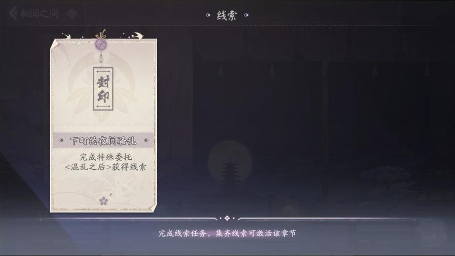 〖贰〗、玩家们在游戏中每通关一个章节都会获取到一个线索任务,玩家们只要完成这个特殊委托任务就可以获取这个线索,玩家们就可以使用这个线索来开启下一个章节了,有一些关卡可以同时开启两个线索任务,玩家们只要挑选自己想要优先游玩的章节就可以了。