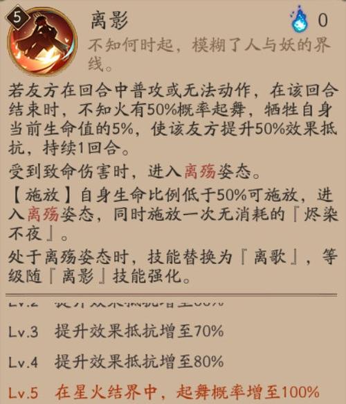 御魂推荐:由于白狼的特殊性,个人推荐为【破势】*2+【针女】*x【网切】*2。这些提供了45%的暴击率,加上自带的10%与释放技能时额外获得的30%。释放技能将有85%的暴击几率,再加上御魂副属性的加成,也有可能不靠御魂主属性也将暴击可能提升到100%(当然是释放技能的时候。
