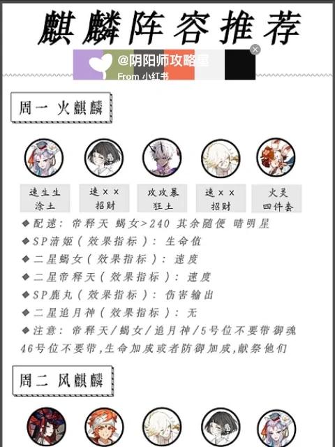 首先,周一的火麒麟副本需要一个奶妈和多段攻击的式神,如弈老板、荒或者妖刀,避免使用单体输出的玉藻前、茨木和陆生,因为火麒麟的大招有减疗并自带护盾,适合段数多的式神。推荐使用花鸟卷作为奶妈,其效果最佳。