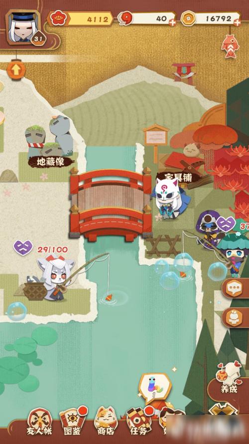 阴阳师妖怪屋如何钓鱼 钓鱼与捕捉虫子、伐木等一样,在右侧的桥边找到钓鱼的地方并点击钓鱼,然后派遣自己需要派遣的式神,如果大家想提升亲密度则需要再点击该式神选取与他一起钓鱼。值得注意的是通过点击屏幕尽可能把鱼钩控制在屏幕的中间区域,点击频率既不用太快也不能太慢,保持匀速即可。