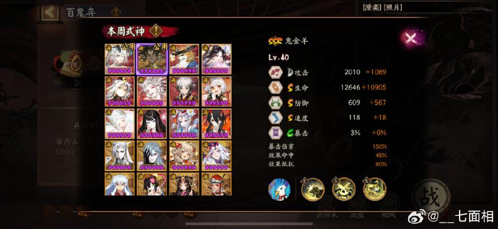 对于她的技能,我们进行了详细解析。首先,百目鬼的1技能名为瞳炎,对单个敌人造成100%攻击伤害,若目标被凝视,则延长其状态一回合。随着等级提升,技能伤害有额外加成。2技能鬼眸,每当敌人暴击,她有40%概率睁开一只眼,当达到25只时,会释放无消耗的诅咒之眼。