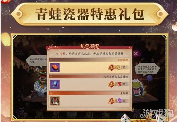 礼包壹:售价128魂玉,包含750勾玉、2个奉为达摩、2个大吉达摩和50,000金币。 礼包贰:售价328魂玉,提供22个神秘符咒、2个4星奉为达摩、2个大吉达摩,还有5星青吉鬼和100,000金币。