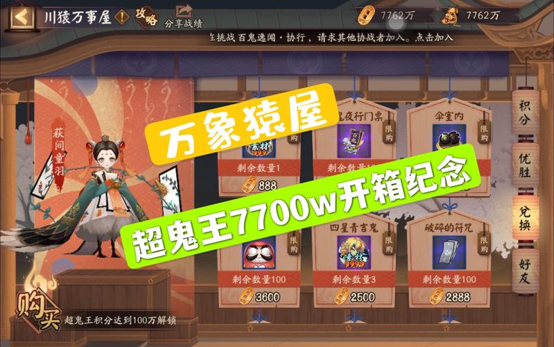 首先肯定是要换华丽箱子和精致箱子的,越贵的越好。简易箱子和朴素箱子已经没什么用了,就那么点体力不要也罢,没有以前超鬼王活动多。超鬼王活动箱子内容 简易礼盒售价1888,奖励是金币、体力和式神碎片。朴素礼盒售价4888,奖励是八歧大蛇的鳞片、结界卡、达摩和sr碎片。