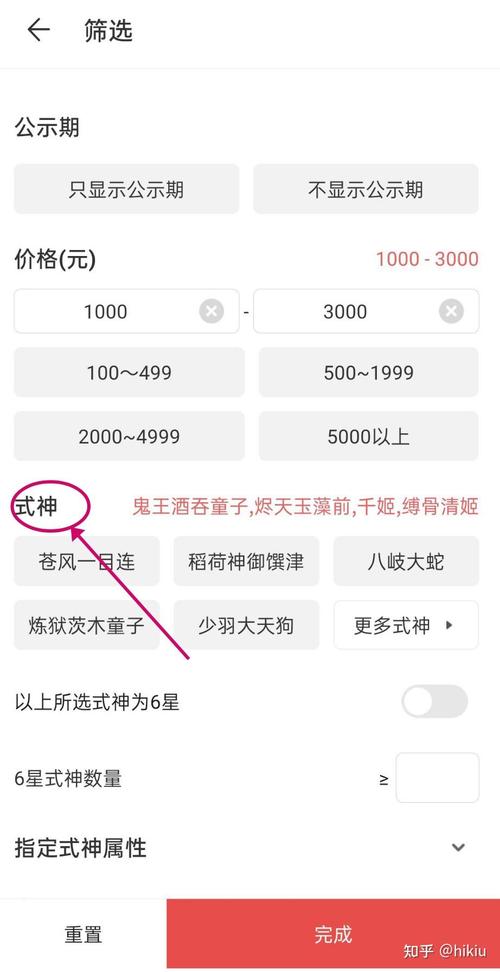 阴阳师藏宝阁买号流程进入首页点击“全部商品”在商品列表,点击右上角的【筛选】,根据您的需要选取相对应的操作系统 、 区服、费用区间、等级、式神、阴阳术、资产、斗技、皮肤和素材,点击【完成】即可查看到对应的角色。