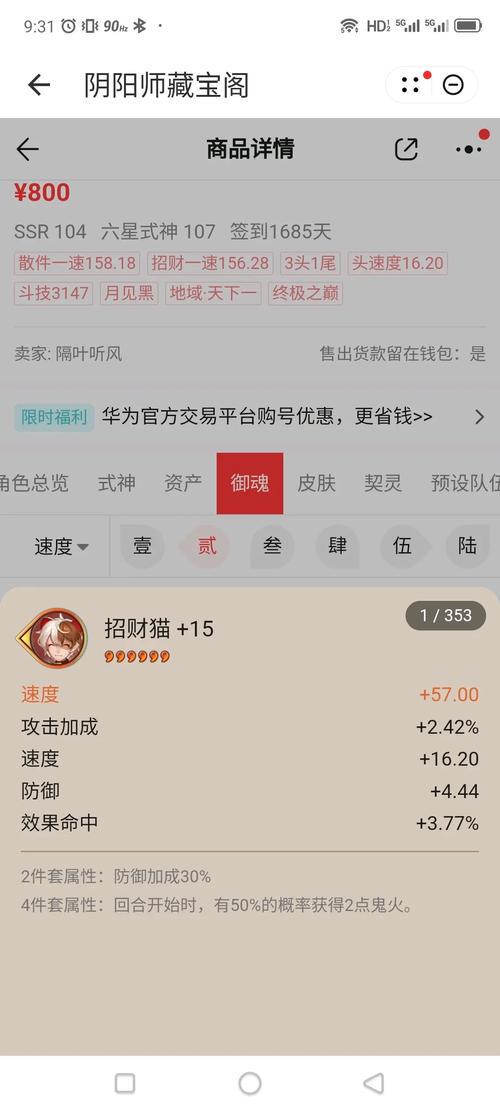 自从阴阳师开放了可以交易角色的藏宝阁之后,买号卖号就屡见不鲜了,很多玩家不清楚买号的时候应该看哪些东西,今天就让为大家解密吧。招财一速的速度(越快越好);辅助御魂练度;爆伤的套数;六星数量;勾玉金币数量;费用(对比相同硬件费用自然越低越好)。