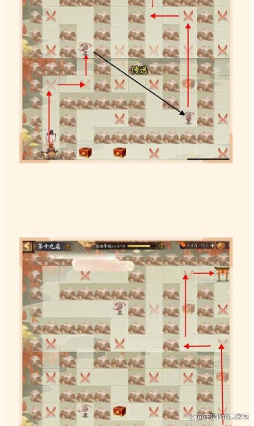 本次爬塔采用走迷宫的形式,路途上会有战斗、答题和宝箱。会有迷雾遮挡路径,你需要根据路径和出口的位置判断正确的路前往下一层。前40层建议大家以最快的速度前往下一层,越往后奖励越丰厚。前20层大家可以选取金币或经验奖励,20层以后选取御魂奖励。