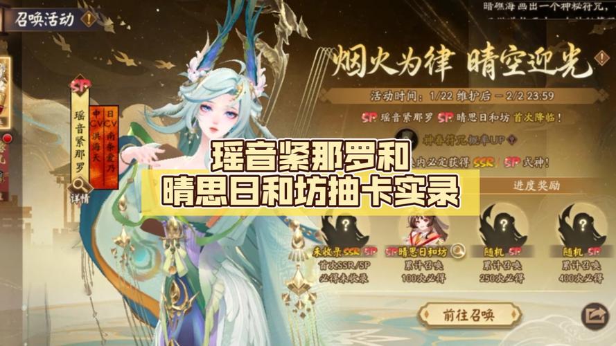 〖陆〗、首先我们来看一下这次秘境召唤的卡池,每次的秘境召唤卡池并不会拥有当前所有的稀有式神,此次卡池中缺少了最新出道的3位式神,铃鹿御前、缚骨清姬和紧那罗都不参与活动,如果你缺少这3位式神的话,那么这个活动对你来说毫无意义。