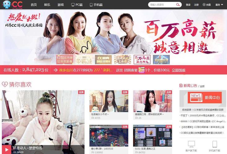 〖叁〗、网易CC直播平台,由网易公司打造,致力于游戏和娱乐直播,为用户提供了观赏网易自研游戏以及其他热门游戏直播内容的平台。用户在此可以观看到包括主机游戏、娱乐以及户外直播等多种类型的直播内容。CC直播拥有庞大的用户基础,注册用户数量已超过8亿,月活跃用户数超过4500万。