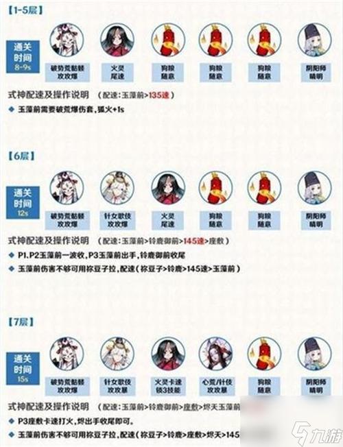 〖叁〗、阴阳师青灯百物语秘闻竞速攻略: 1~5层:使用玉藻前搭配破势荒骷髅,速度要快于135,再加上火灵的座敷童子和其他三个随意狗粮,晴明带队,轻松8秒通关。 6层:玉藻前继续破势荒骷髅,一速;铃鹿御前针女歌伎,二速且速度要快于145;座敷童子火灵尾速,晴明带队,再加两个狗粮。