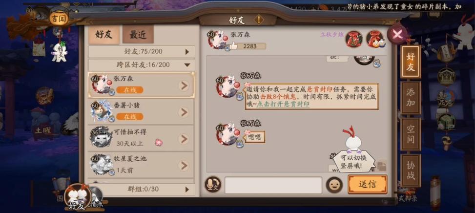 协同悬赏封印是游戏社交活动中交流最少的部分。虽然接受任务后会有好友界面的自动消息,但并无必须回复的压力。然而,该系统存在一个隐藏的尴尬设定:如果玩家接受协作后忘记完成任务,会导致双方错失收益。