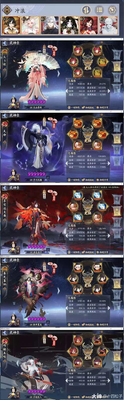 队伍搭配方面,雨女作为1速,可选取4地藏+2防御以保证生存;火女作为2速,4招财+2命中有利于输出;惠比寿作为3速,4火灵+2生命提供生命支持,有时也可与火女搭配;桃花妖为4速,4蚌精+2生命作为替补,以防御秒杀对手;酒吞神将作为核心,追求X速,4地藏+2防御为他提供生存保障。