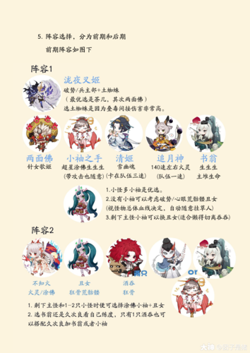 〖壹〗、单体阵容:不知火、酒吞、酒吞、丑女、小袖之手追月神、丑女、书翁、茨木、蜜桃。小袖之手带招财或者涂佛,不要速度,锁定2技能。