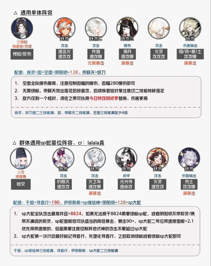 群体阵容:使用阴阳师晴明、SSR千姬、SR清姬、SSR帝释天、SP花鸟卷、SSR两面佛。此阵容以晴明为核心,晴明的群体治疗和控制技能能有效提升整个队伍的生存能力,千姬和清姬的输出能力强大,帝释天的单体输出和控制能力优秀,花鸟卷的群体治疗和辅助能力出色,两面佛的增益和复活能力让队伍更加坚不可摧。