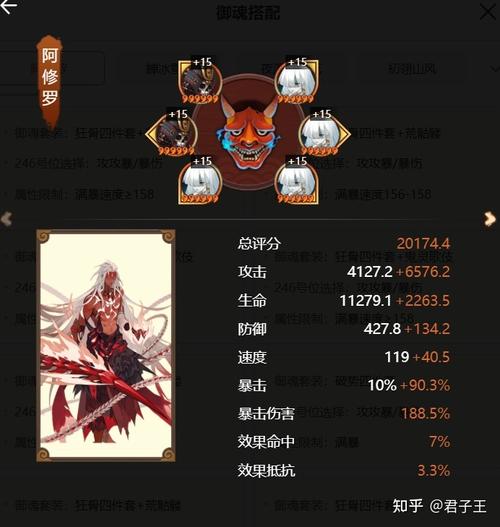 〖壹〗、③ 大蛇:129超星速度即可,3件攻击套装,堆攻击,攻击越高越好,主要提升SP玉藻前的攻击。④ 追月神:122速度,攻击加成的4件套,火灵套装。⑤ 帝释天:速度最快,大于阿修罗,3件攻击套装,堆攻击,攻击越高越好。⑥ 阴阳师晴明:技能带星和灭即可。