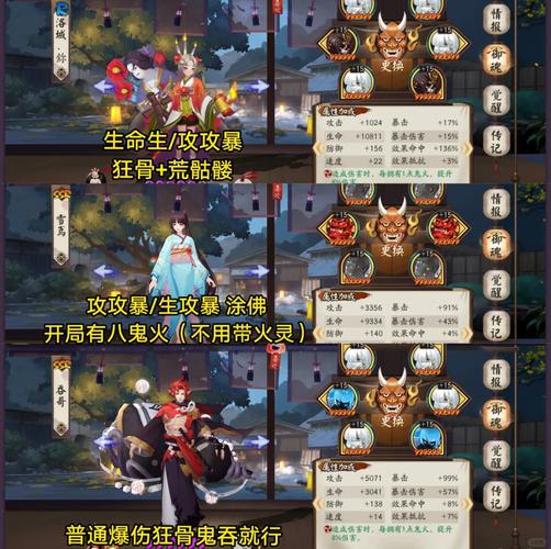 〖壹〗、剃魂一目连,选取生命和速度,确保盾牌的厚度和队伍的机动性。在选取式神时,兼顾输出和生存是关键。例如,日女吞提供稳定的输出,地藏雨女增强生存能力,般若和惠比寿则提供额外的辅助效果。这样,无论面对何种阵容,队伍都能有应对之策。