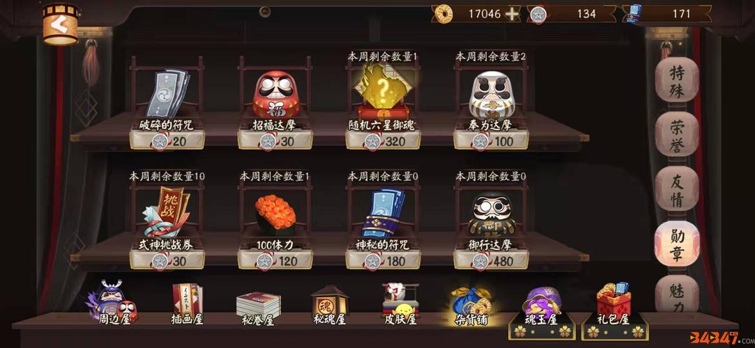 〖贰〗、一般是每天中午出现,找到自己的阴阳寮,旁边会有个达摩,下面有时间限制,点击就可以挑战,血比较厚,要打一定时间,奖励不错,而且有20左右的体力可以拿,拿完就可以接着肝了。商店购买体力 每天一次60勾玉的体力比较好都买,很划算,比召唤划算很多。