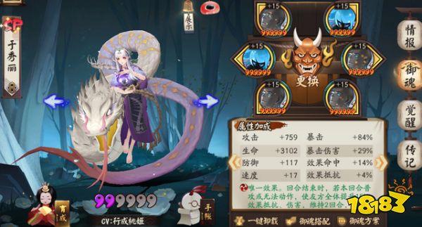 御魂推荐 招财/雪幽魂;速攻爆伤/速命攻/速生攻(可抢一速)选取理由 SP缚骨清姬单卡战斗能力强,擅长持久战,耗火比较高回合也多,因此估计可以绑定招财,但毕竟毒减速在身,虽然大多数单体,雪幽魂也是可以用的。