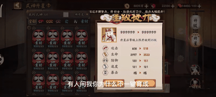 御魂搭配 PVP:招财速攻攻,优先堆速度。招财御魂能为队伍提供稳定的鬼火,适合在PVP战斗中频繁释放技能。PVE:涂佛/狂骨攻攻暴,满暴击。涂佛能提供额外的增伤效果,狂骨则能在有鬼火时大幅提升输出,两者都适合在PVE中作为输出或辅助输出使用。式神培养 技能要求:满3技能。