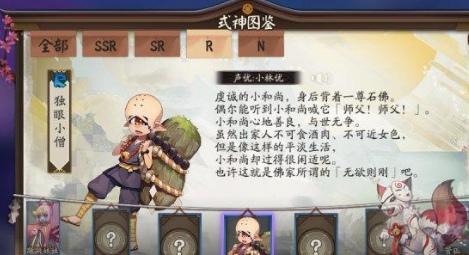 〖陆〗、《阴阳师》中的独眼小僧是一位以木鱼为基础的妖怪,它背着一尊石佛。玩家常常需要寻找这些生物来完成悬赏任务。以下是独眼小僧的常见刷新点,按照章节和地点进行了分类。