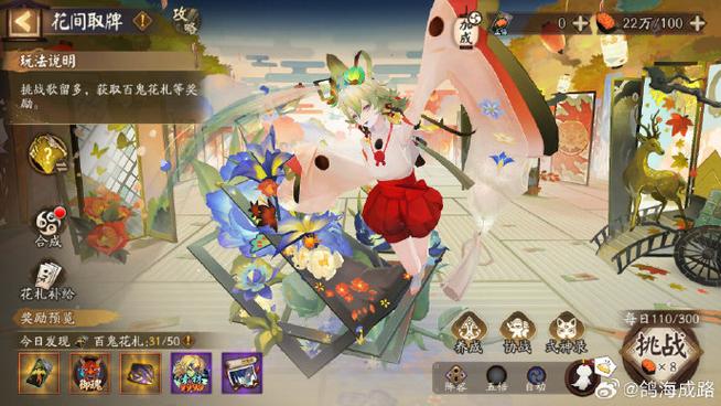 〖肆〗、樱饼获取攻略每天任务 玩家完成每天任务之后可以获得20个樱饼。逢魔之时 樱饼应该是在逢魔之时的总奖励里的,所以玩家直接在逢魔之时里点击右下角的搜寻按钮就可以了,点击满四次即可。阴阳寮功勋商店 5个勋章兑换1个樱饼,玩家每周可在兑换50个樱饼。