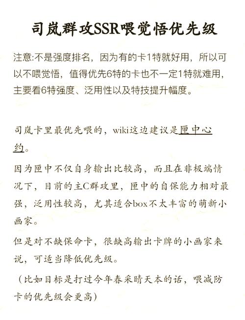 〖壹〗、给卡牌表明其稀有度。其中sp和ssr是最为稀有的,依次往下是sr、r、n。不同稀有度的卡属性和强度可能都会有所不同。以阴阳师为例,抽卡中大家最常拿到的肯定是N卡或者是R卡,其次是SR,再往上才会有SSR和SP。