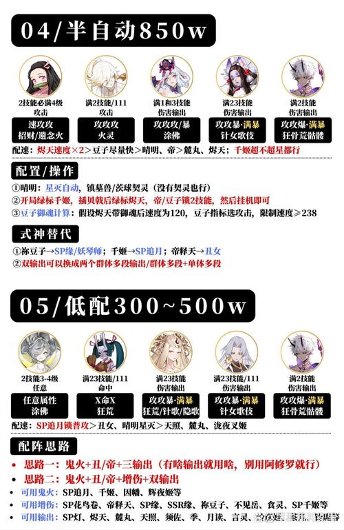 〖壹〗、- 1速:SP千,招财,堆攻攻攻/暴满暴 - 2速:铁鼠,涂佛,堆攻攻攻 - 3速:SP面,海月,堆攻攻爆满暴 - 4速:因幡,火灵,堆攻攻爆满暴伤 - 5速:茨林,破荒,堆攻攻爆满暴 战斗策略 - 铁鼠主普攻,因幡锁定2号位,比丘尼预知(晴明妖术),其他妖术挂机即可。
