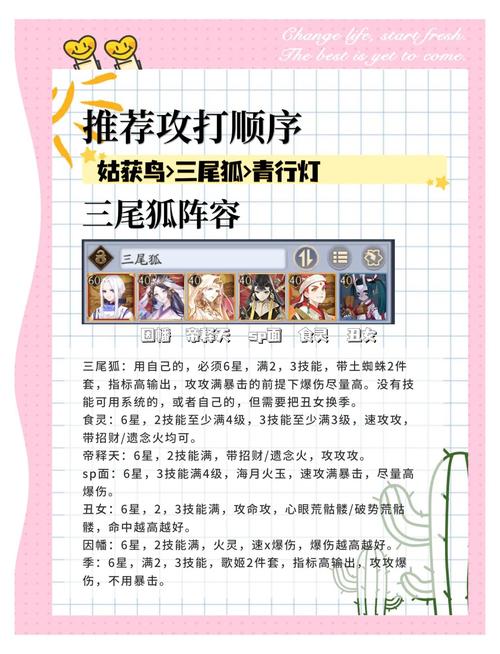 〖陆〗、对于想要在阴阳师的六道之门中成功通关三尾狐关卡的玩家,下面是一份详细的攻略,旨在帮助你优化阵容搭配,顺利通过挑战。首先,我们推荐的阵容是针对【六道·错季森】副本设计的,这个副本中新增了四季之屿关卡,分为5关、10关和15关,每关都有不同的季节元素。