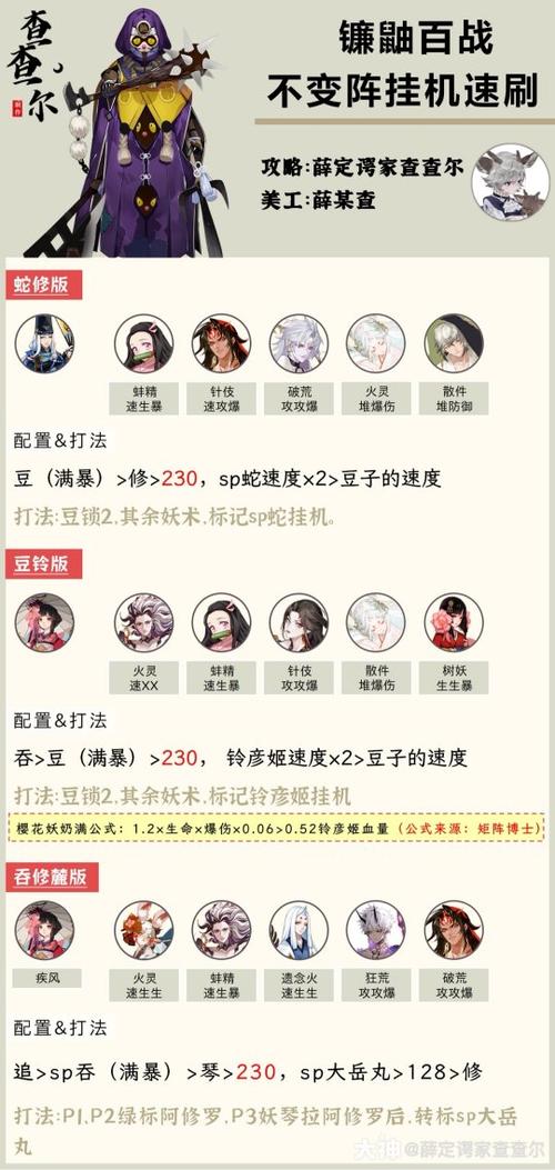 阴阳师镰鼬百战冲榜阵容攻略2022,以下为操作流程:1-9层:直接收补拉蛇。10层:称拉蛇过P1-2,P3称拉蛇开大,高速修补刀收尾。配速配置:称修210。翻车点:触发双镜姬弹死本体蛇P2;阿修罗不出针女。翻车点触发概率不高,阵容稳定。操作流程:全程绿标阿修罗。
