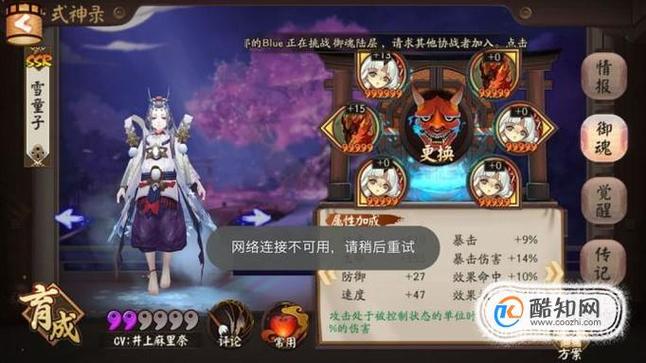 〖壹〗、效果命中型御魂可以提高雪女的控制效果触发几率,使她在战斗中更容易控制敌方行动。推荐使用的御魂有网切、招财猫、薰草等。攻击增益型雪女御魂搭配 攻击增益型御魂可以让雪女的输出能力大幅提升,在短时间内造成巨大伤害。主要推荐使用的御魂有伤魂鸟、狰、狂骨等。