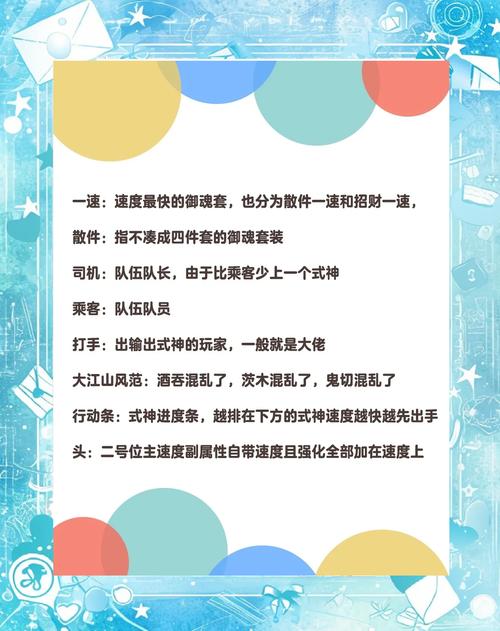 总结 阴阳师游戏内术语包含漫展车、御魂属性、控制效果、一拖四等概念。了解这些术语有助于在PVE与PVP中做出策略选取。游戏为养成类,需耐心培养角色。