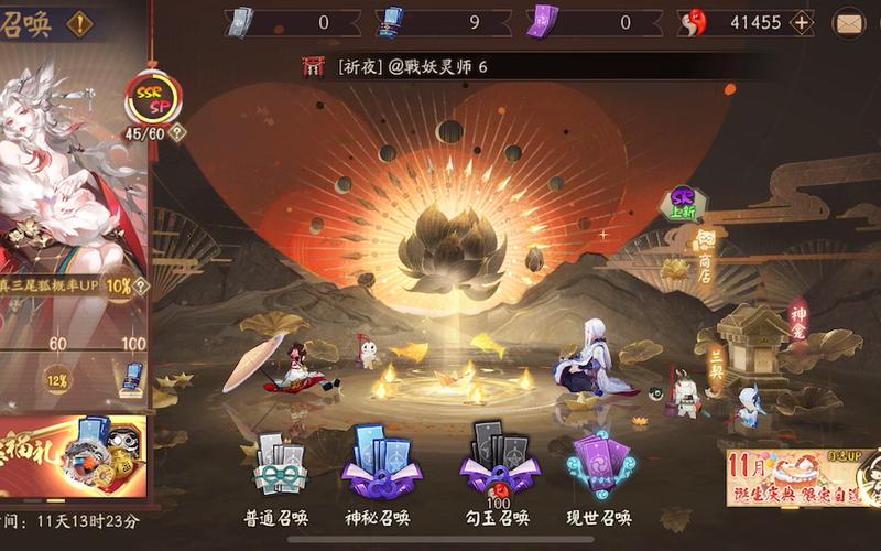 阴阳师祈愿活动入口在庭院右侧的灯笼处。以下是具体的进入步骤和活动相关介绍:进入方式:玩家首先进入游戏的庭院场景。在庭院的右侧,找到并点击灯笼图标。在灯笼界面,点击卷轴或阴阳寮选项。接着,选取并点击祈愿,即可进入祈愿活动界面。活动时间:祈愿期:1月15日维护后至2月12日23:59。