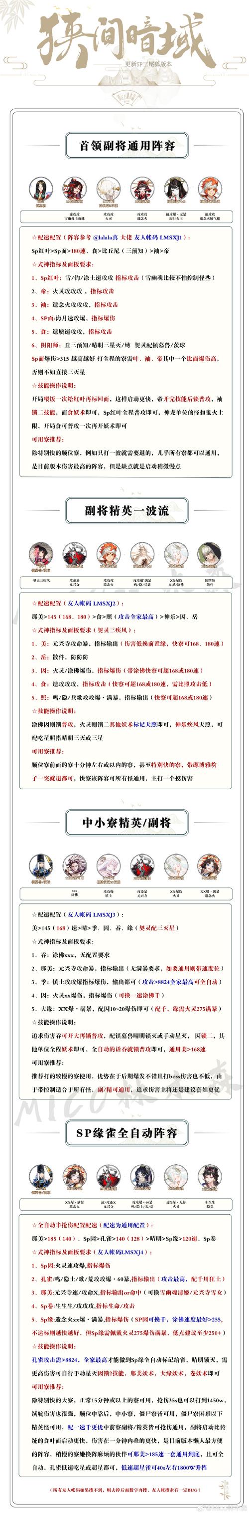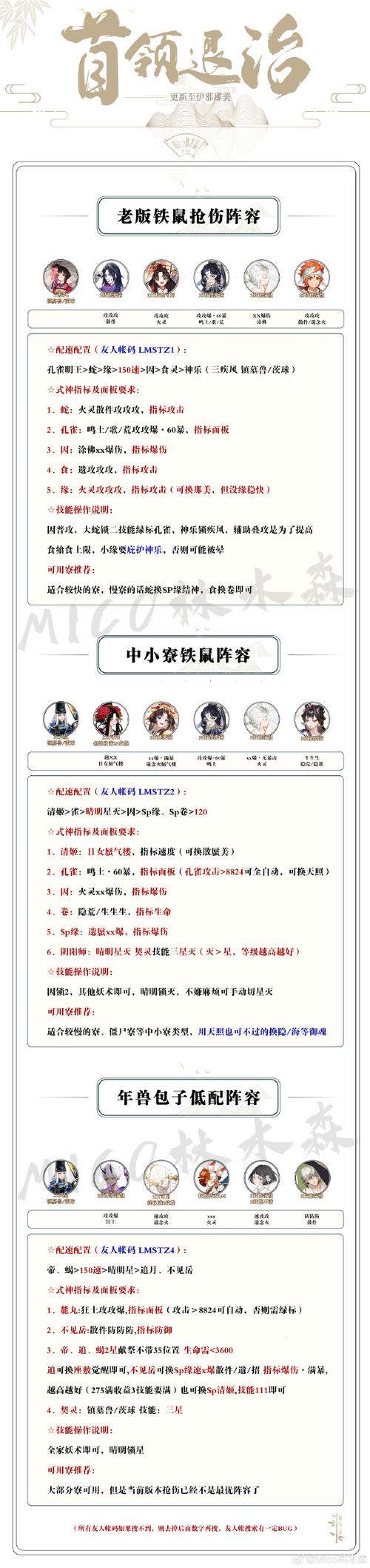 阴阳师极蜃气楼斗魂4400玩法攻略如下:阵容搭配 核心式神:根据提供的图片阵容借鉴,核心式神可能包括千姬、紧那罗、缘结神、帝释天和蝎女等。这些式神在斗魂活动中能够提供强大的输出和控制能力。配速要求:确保晴明的速度适中,以便在关键时刻提供保护和增益效果。